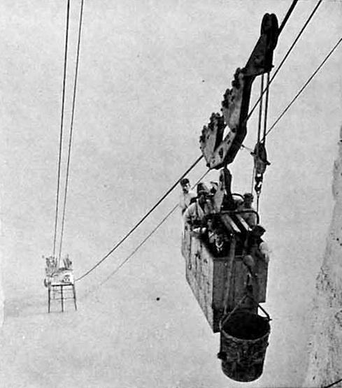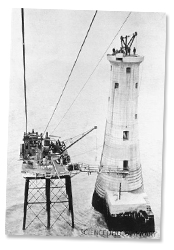 Long story short, a cable rope-way system ferried men, equipment and resources to and from the build. A platform was built next to the lighthouse from which they could slowly but surely create the glorious tower you see today.