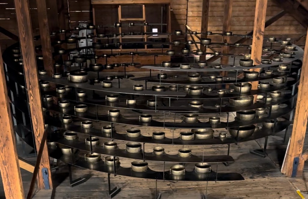 Today, as a regular punter, you can go up the tower on most weekends. At the bottom of the tower is a collection of memorabilia, and you can immediately hear the tones of the Longplayer up above. Once you trail up the first flight of stairs, you’ll come across the instrument itself. The song you hear is programmed to last for 1000 years, starting on the 31st of December 1999. You can wander around the bowls, which were used to conceive this music at the hands of Jem Finer (one of the founding members of the Pogues).